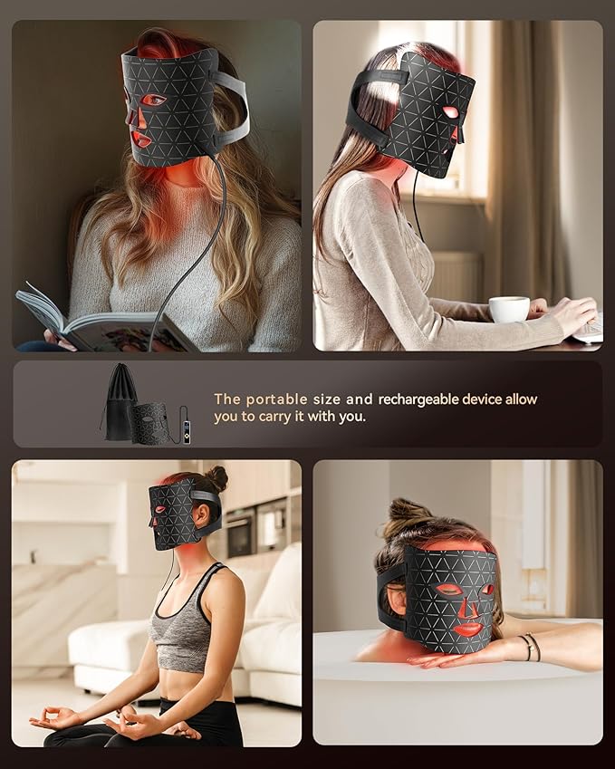 - ❤️ How to Use Red Light Therapy Regularly: For best results, relax and lie down for 10 minutes during each session. The mask is designed to fit all face shapes, allowing you to enjoy red light therapy at home or on the go.