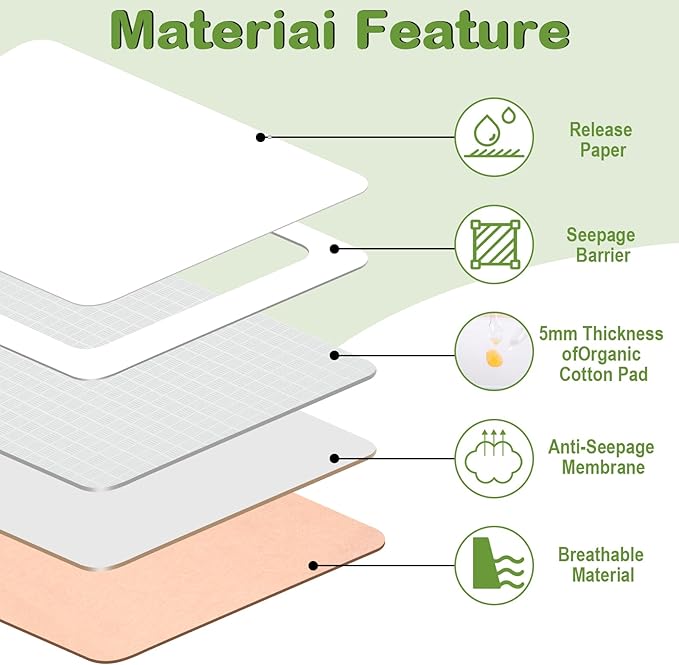 - Double Anti-oil Leakage Design: castor oil patches are made of breathable spun lace nonwoven, highly absorbent core layer, together with anti-seepage frame leak-free layer; Outer layer fabric provides a soft and comfortable feel; The unique 2 mm thick pure natural cotton core layer ensures high absorption capacity; The anti-overflow frame PU waterproof layer locks oil and avoids maceration, allowing you to enjoy a comfortable castor oil care experience