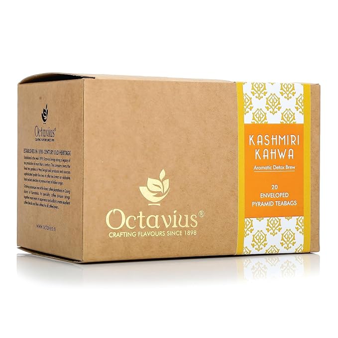 Octavius Enveloped Kashmiri Kahwa Green Teabags | Aromatic Detoxing & Immunity Boosting - 20 Easy to Use Pyramid Tea Bags | Mothers Day Tea Gift Box