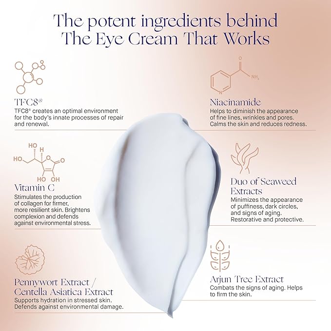- Our eye cream features a creamy, weightless texture that sinks in quickly and completely for a residue-free burst of hydration.