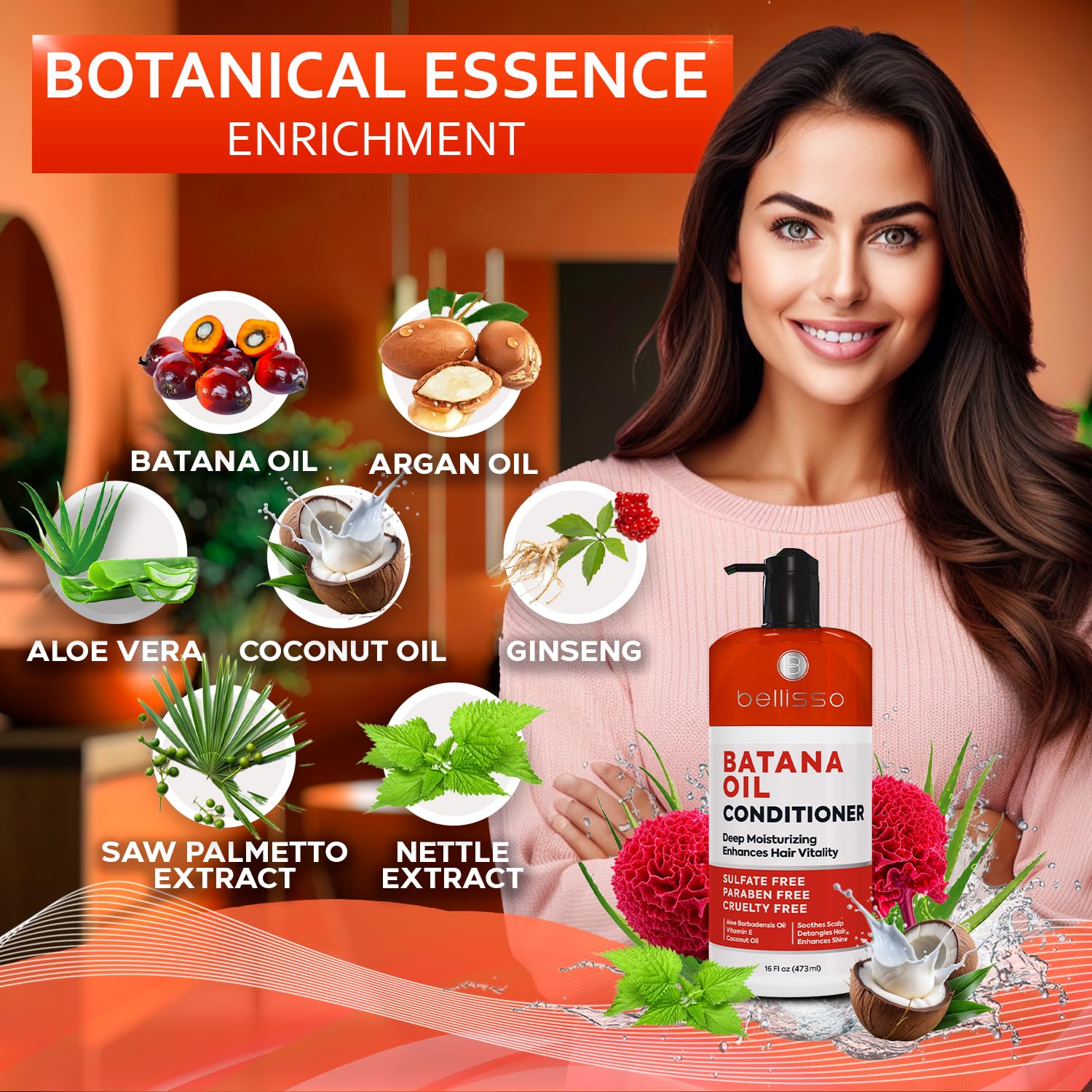 BELLISSO Batana Oil Conditioner for Women and Men - Sulfate Free, Volumizing Treatment for Thinning Hair - Thickening, Volume Boost - 16 Fl Oz