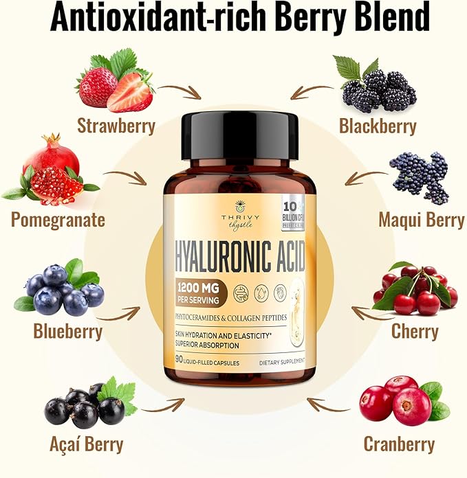 - Our 19-in-1 Hyaluronic Acid Supplement supports skin, boosts immunity, and enhances joint, bone, hair, and eye. Contains advanced liquid encapsulation for improved absorption.