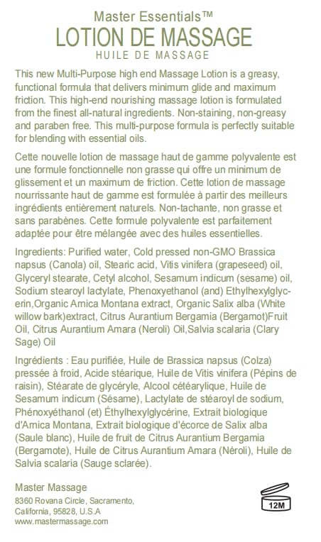 Master Massage Organic Massage Lotion (Pack of 2) - 8 fl oz, Skin-Nourishing Formula for Relaxation, Ideal for Massage Therapy and Home Use